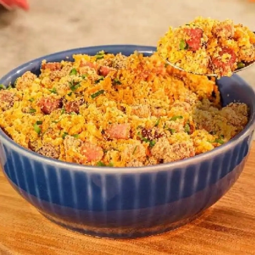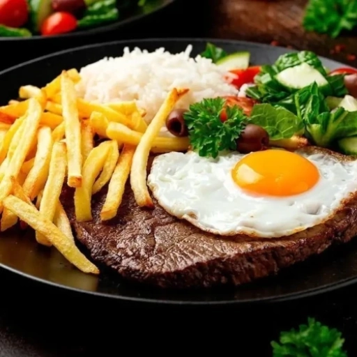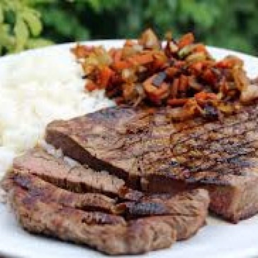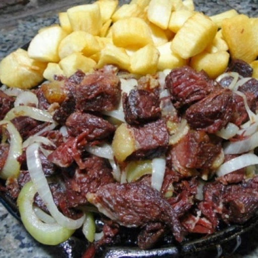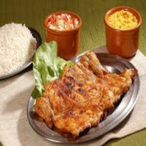Picanha, Aipim Cozido, Arroz e Farofa.