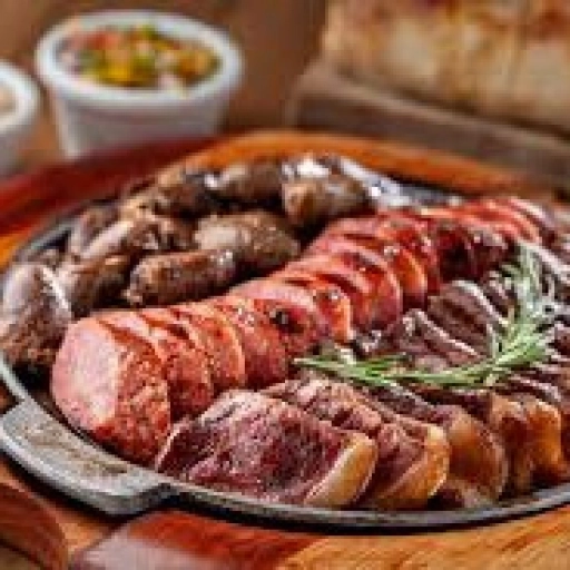 Carne, frango, linguiça mineira. coração, peito de frango, pao de alho e queijo coalho.